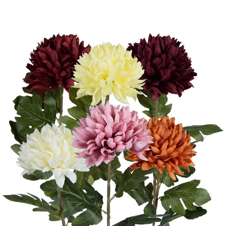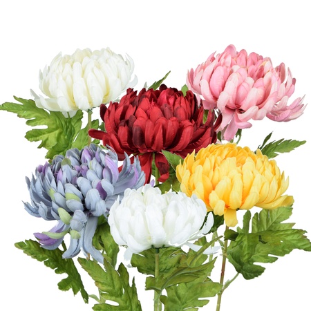 A seasonal selection of chrysanthemum stems, available in various colours and sizes. The chrysanthemums are available with different flower head shapes (round, brushed up, acicular, jagged, and flat) and feature elegant stems with leaves.