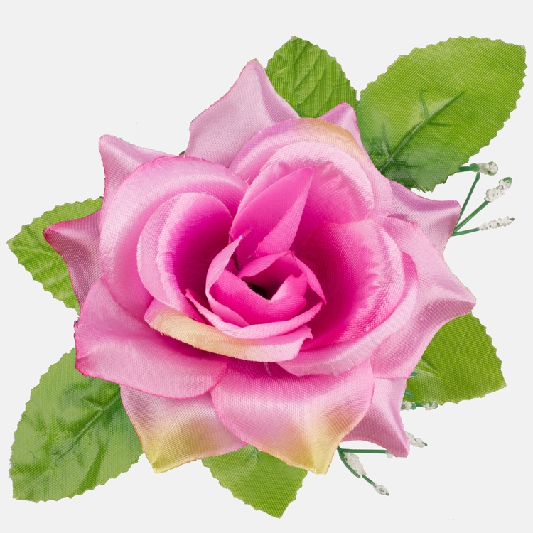 Satin rose with leaves W485P