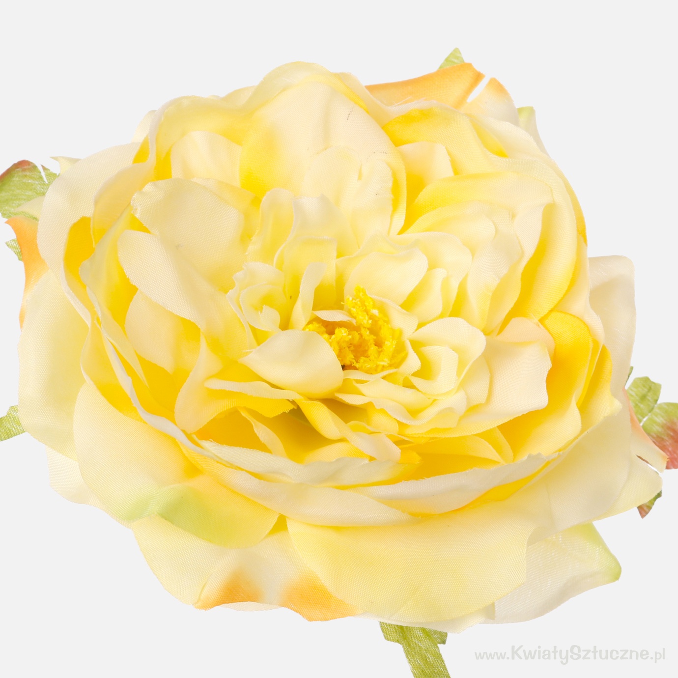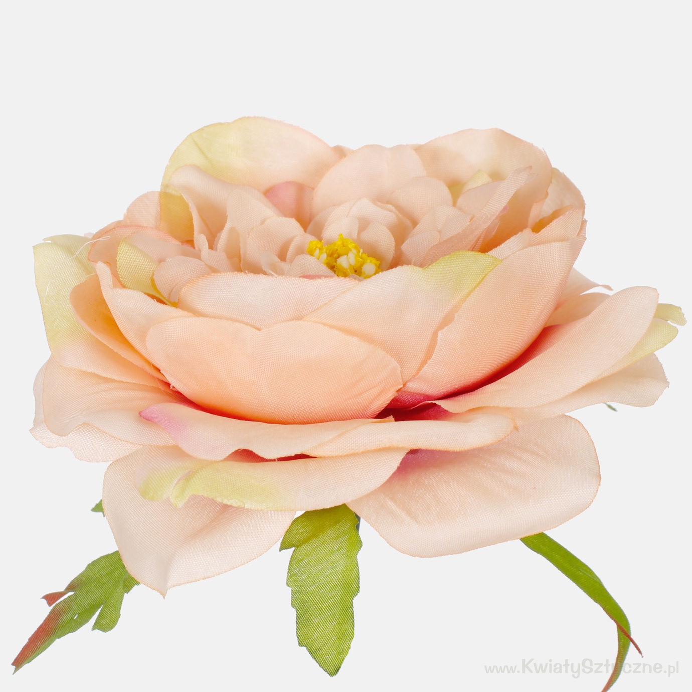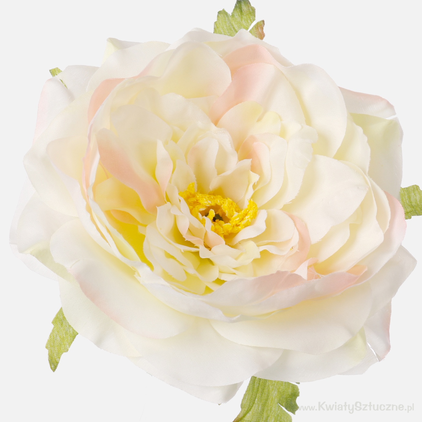 A fully opened peony head, with the addition of leaves at the bottom of the calyx. Recommended for making bouquets.