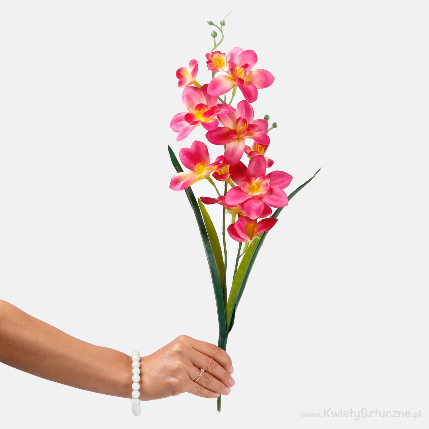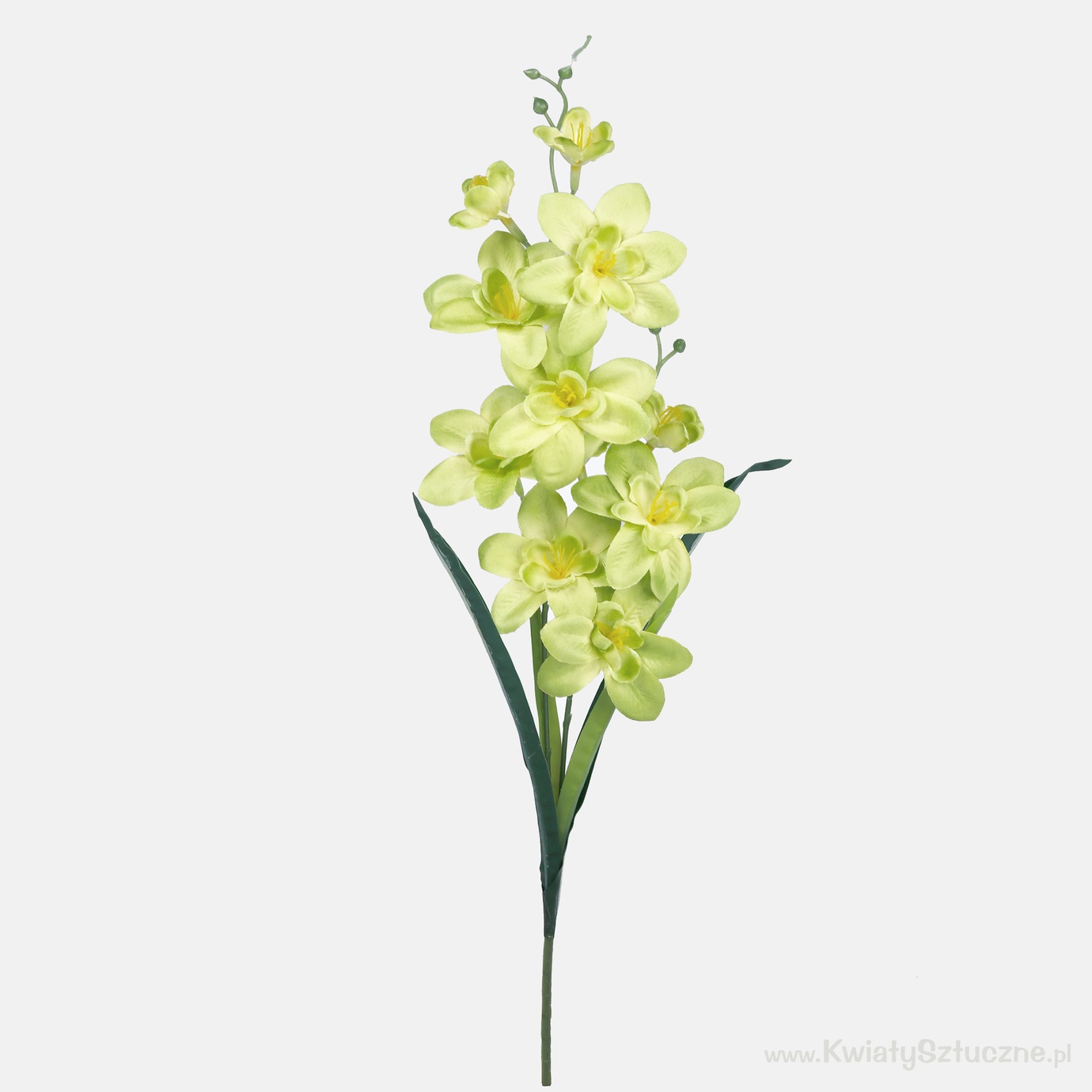 Satin orchid twig. Contains a double inflorescence, and four leaves. Available for purchase in a mix of six colours, or each colour separately.