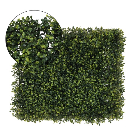 Plant mats are used to create green or floral walls, also known as "vertical gardens". Artificial green walls do not require special care, and as such, they are great for apartments, offices, hotels, restaurants, and commercial outlets (exhibitions, shop windows). They are getting increasingly more popular among wedding room decorators as they make it possible to easily create a floral wall to serve as romantic background for the Bride and Groom. Some panels can also be combined using a snap system. Once assembled, the set is attached to the base with cable ties, wires, or screws.